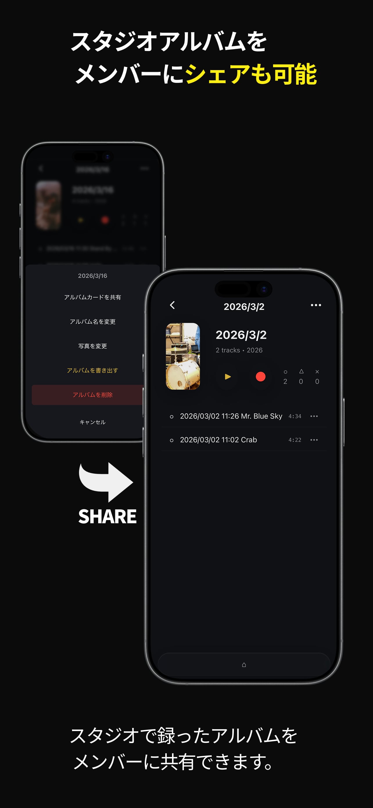 その日のスタジオ練習を、1枚のアルバムとして残すことができます。